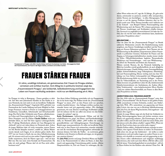 Das Frauennetzwerk Pinzgau zeigt im aktuellen Artikel im Magazin platzhirsch, wie stark, vielfältig und engagiert Frauen in unserer Region sind. Hier geht’s zum Artikel.